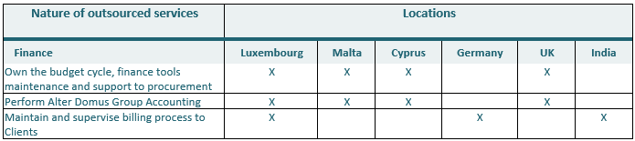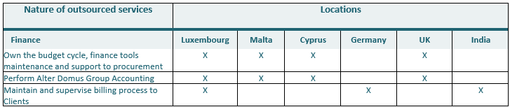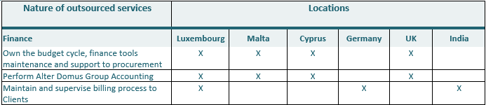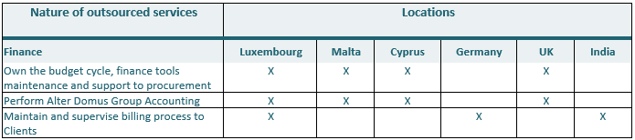 Please find below the outsourcing arrangements for the following Alter Domus Luxembourg entities: